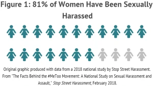Sexual harassment affects nearly every company, both in and out of the physical workplace. A 2018 national study performed by the groups Stop Street Harassment, Growth from Knowledge, Raliance, and the UC San Diego Center on Gender Equity and Health reports that approximately 81% of women have been sexually harassed in some way, as depicted in Figure 1.[ii] These numbers are alarming, and management of companies must take this fact into account to avoid sexual harassment and its impacts.